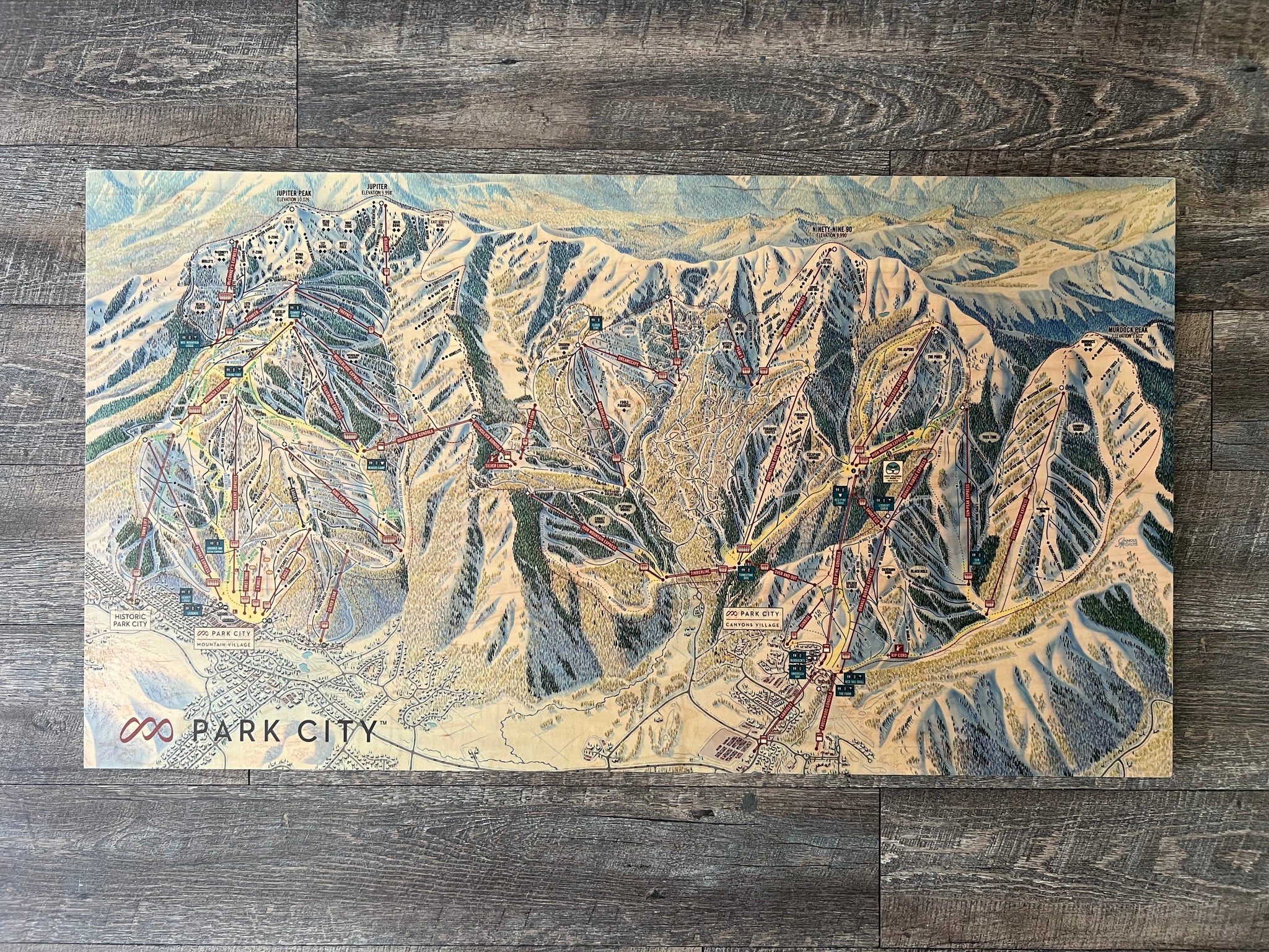 Ultra-resolution resort image imprinted on durable, light-weight alloy. See the every run, lift, and feature in stunning detail. Available here.