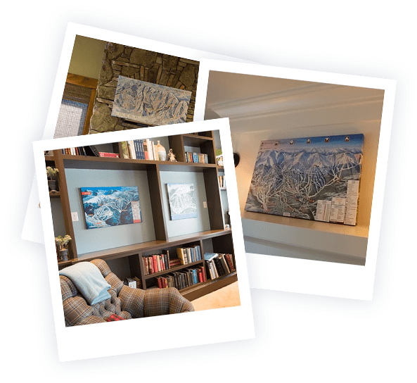 The perfect compliment to your ski themed decor, resort maps are the intersection of art and information. Choose from our collection or request your favorite hill.
